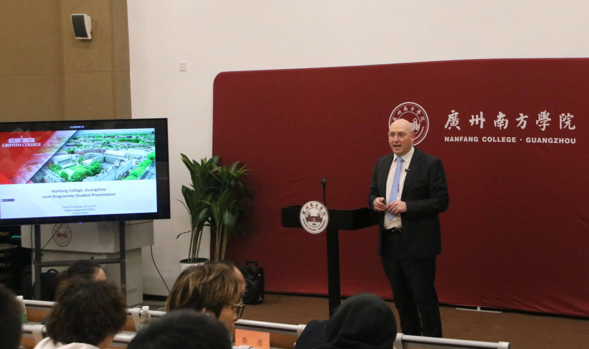 格里菲斯学院副校长凯文·盖根(Kevin Geoghegan)在广州南方学院宣讲
