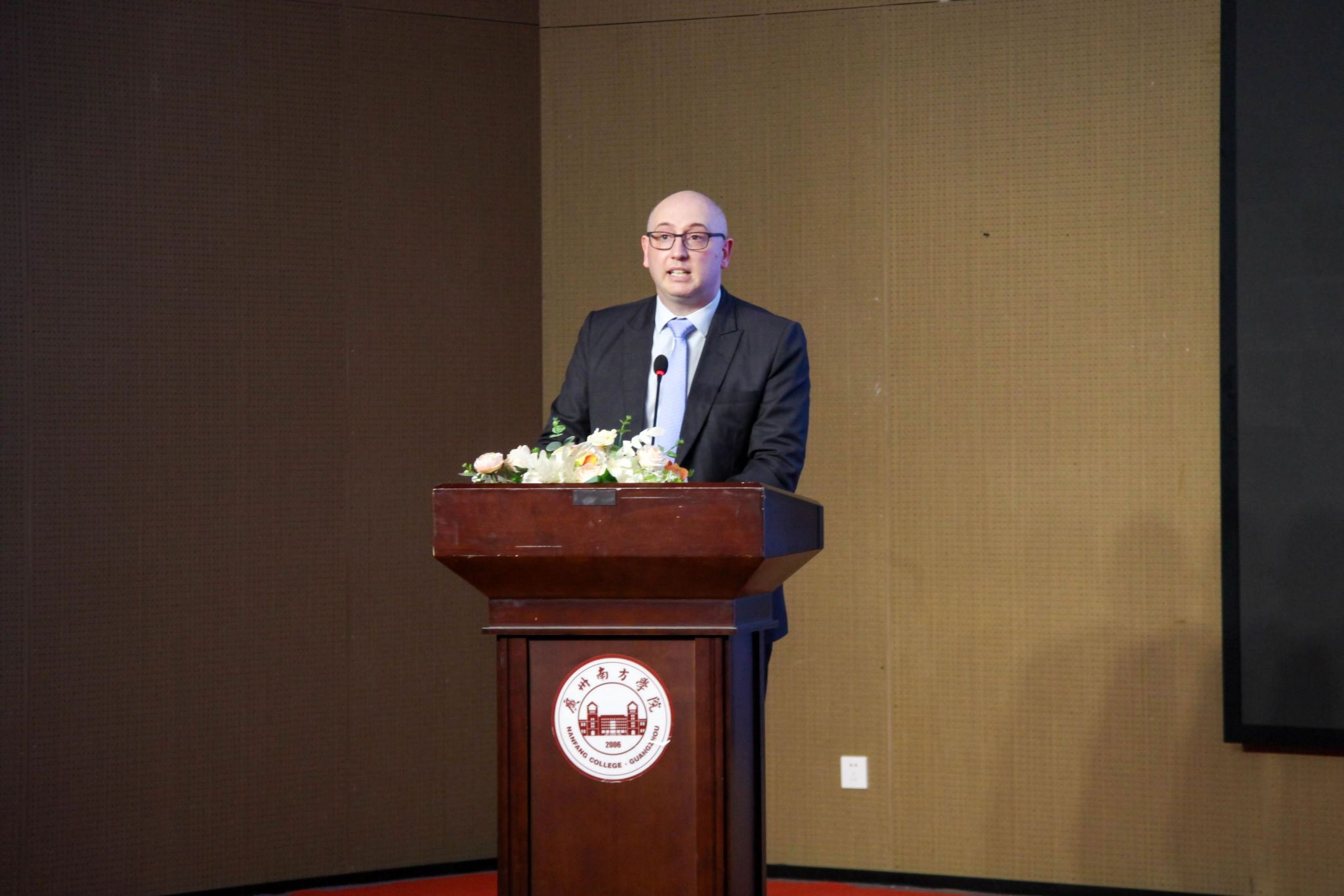 赫尔大学商学院副院长Peter Andrews以三个“C”寄语新生:Curious(好奇)、Courageous(勇敢)、Connected(连接)。他鼓励同学们勇于提问、敢于探索、不断突破自我,并珍惜两校提供的跨文化学习机会,用开放的心态拥抱全球化的未来。