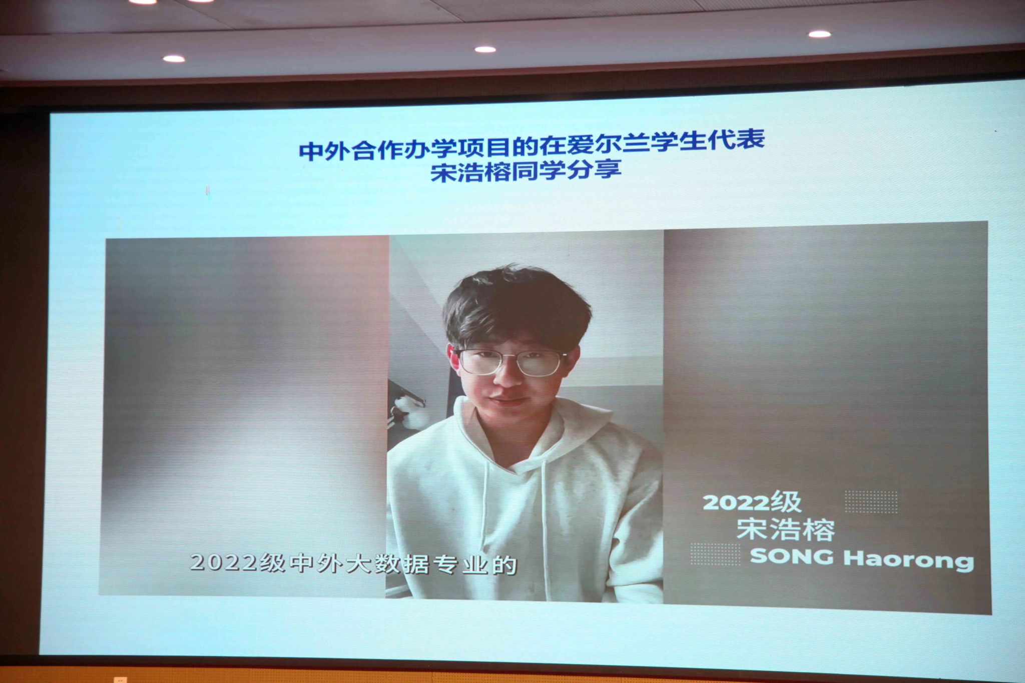 来自电气与计算机工程学院2022级数据科学与大数据技术(中外合作办学)项目的宋浩榕向学弟学妹们介绍了在爱尔兰都柏林的学习与生活。他表示,格里菲斯学院浓厚的学术氛围与启发式的教学方式,正在改变他的学习习惯。希望同学们珍惜学习机会,勇于突破思维边界。